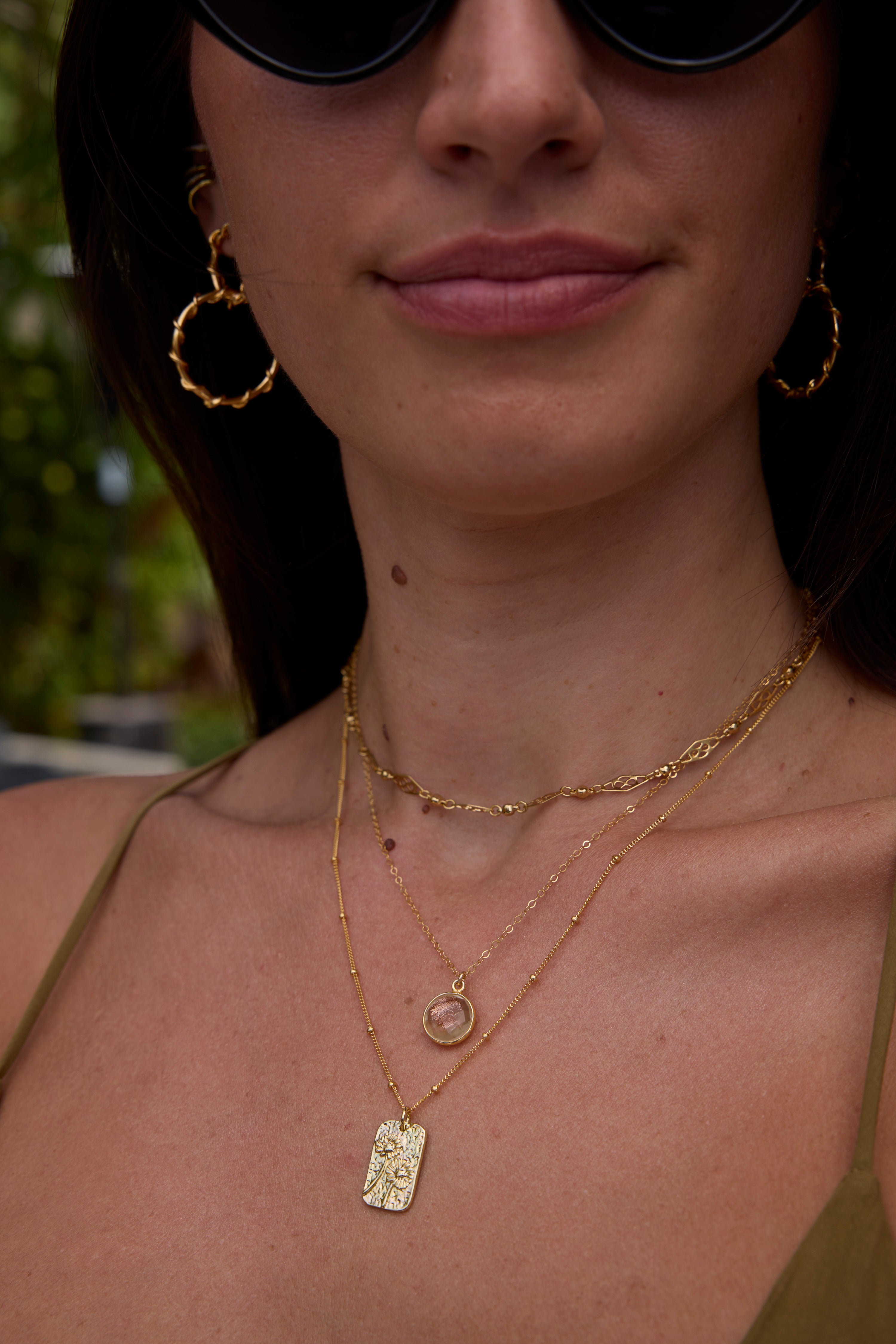 Also on model: Bloom Necklace, Evangeline Choker, Braided Rio Hoops