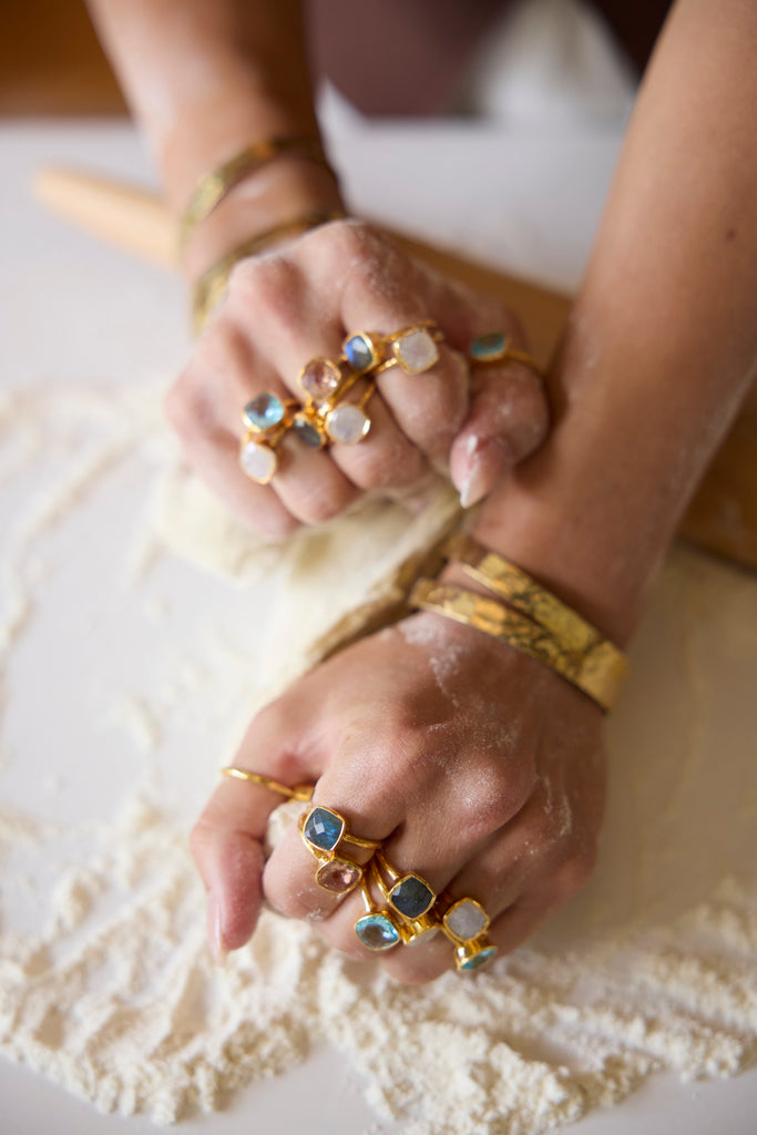 Also on model: Cushion Cut Ring in Topaz, Cushion Cut Ring in Morganite, Cushion Cut Ring in Moonstone, Thin Polished Cuff in Gold