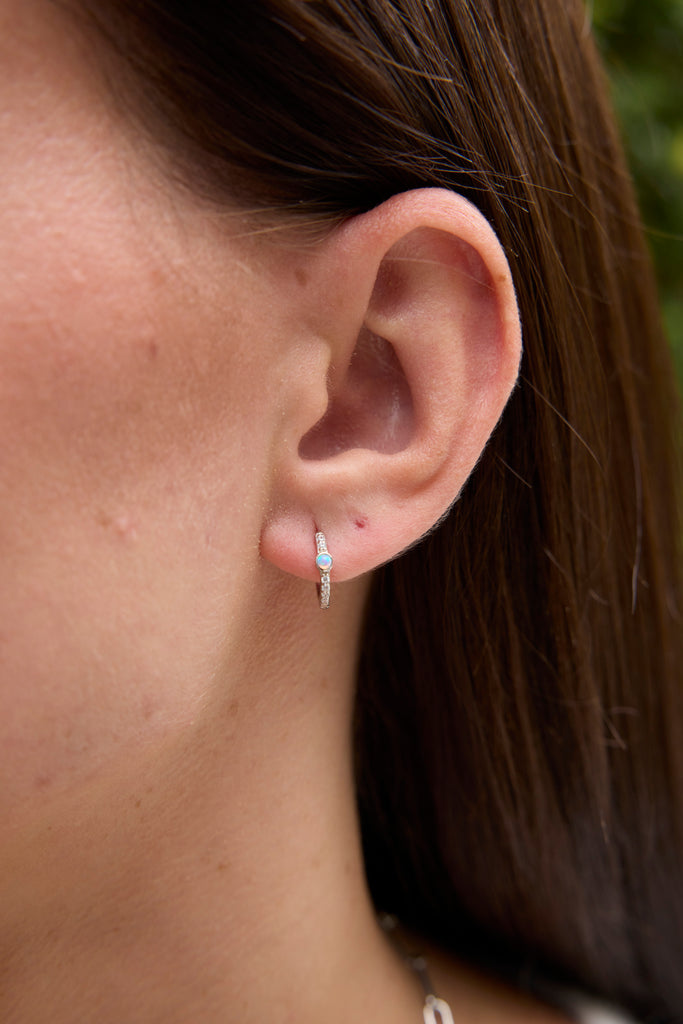 Opal and CZ Huggies in Silver